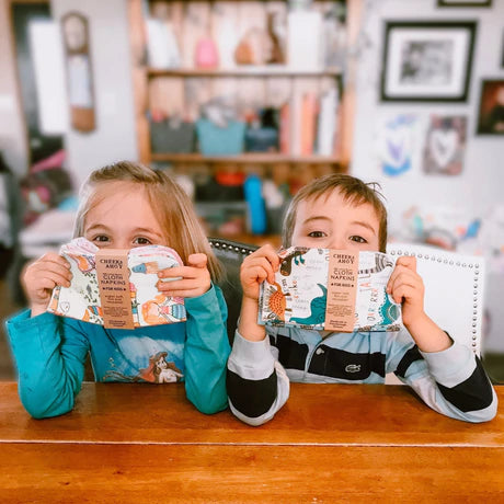 Teach your kids about caring for our environment! Let them pick out a napkin for their school lunch-box or to help set the table at home. Napkins are single ply 8"x8" - the perfect size for your child. Made from 100% cotton flannel.
