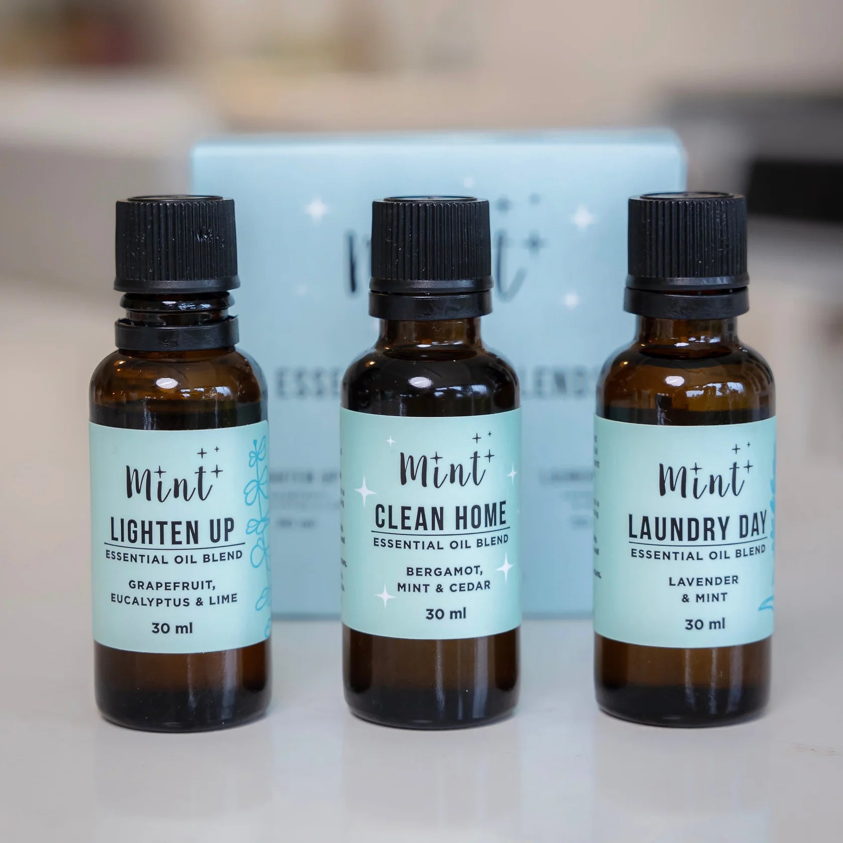 A harmonious combination of Mint Cleaning's custom blend of , Bergamot, Mint and Cedar to create a naturally clean environment reminiscent of a clean home. 30 ml bottle.
